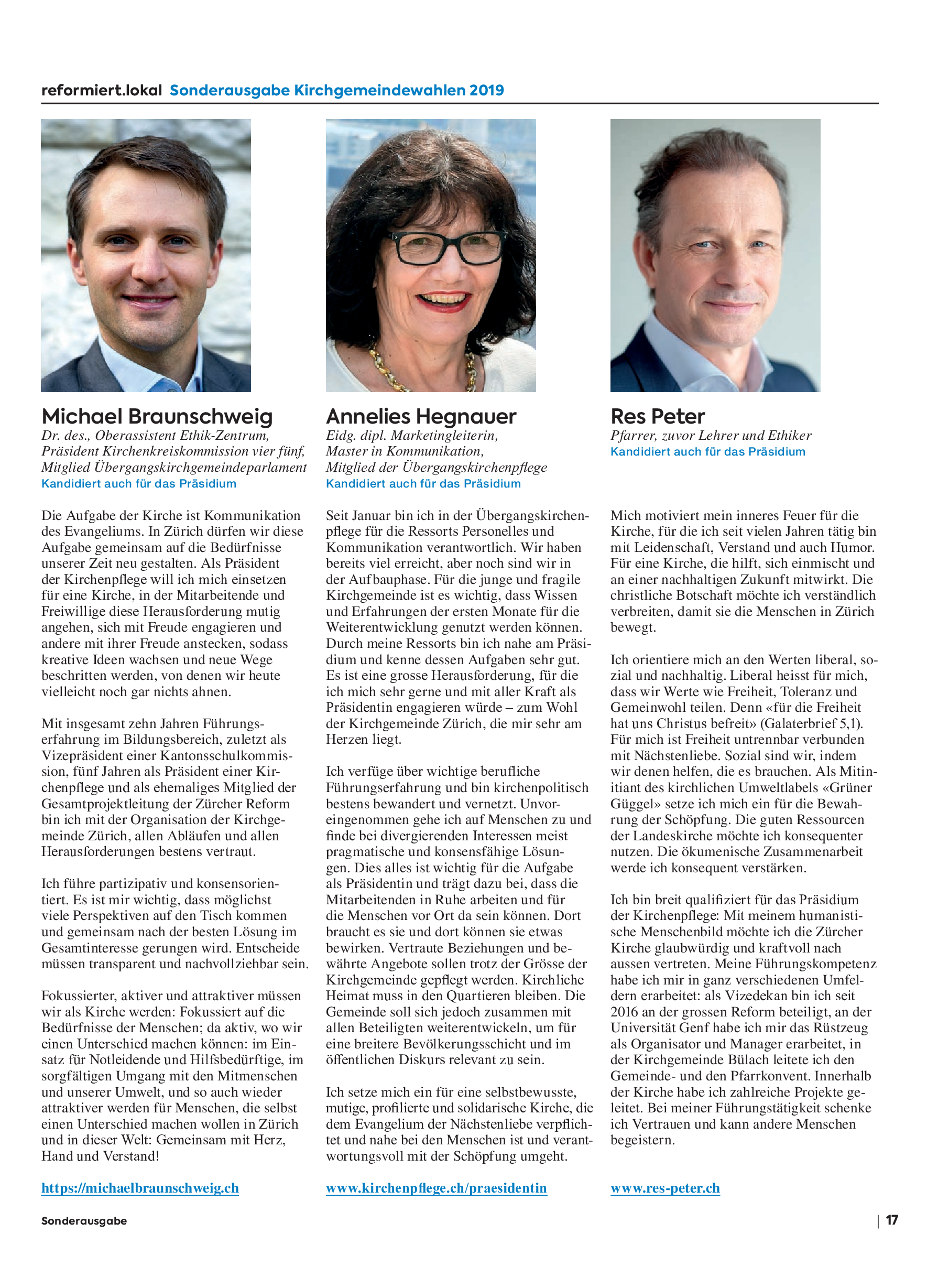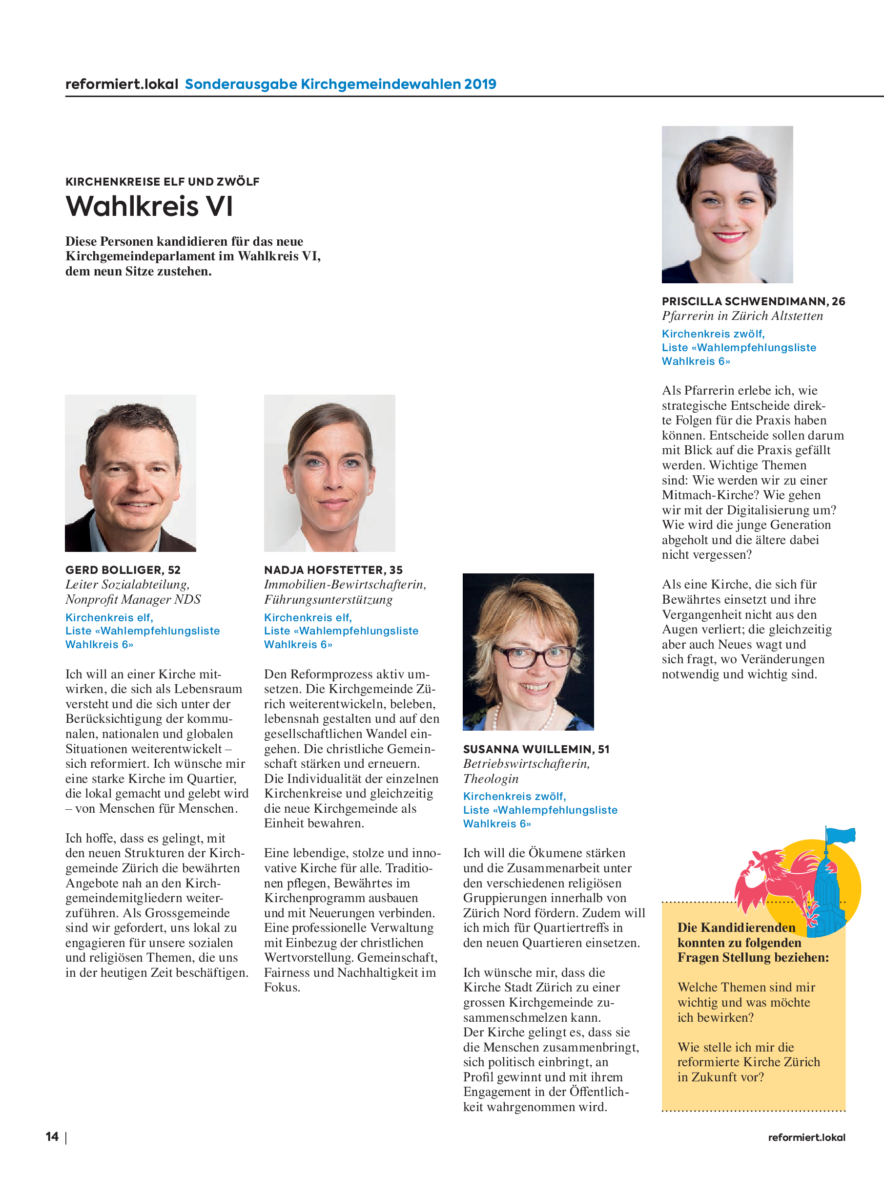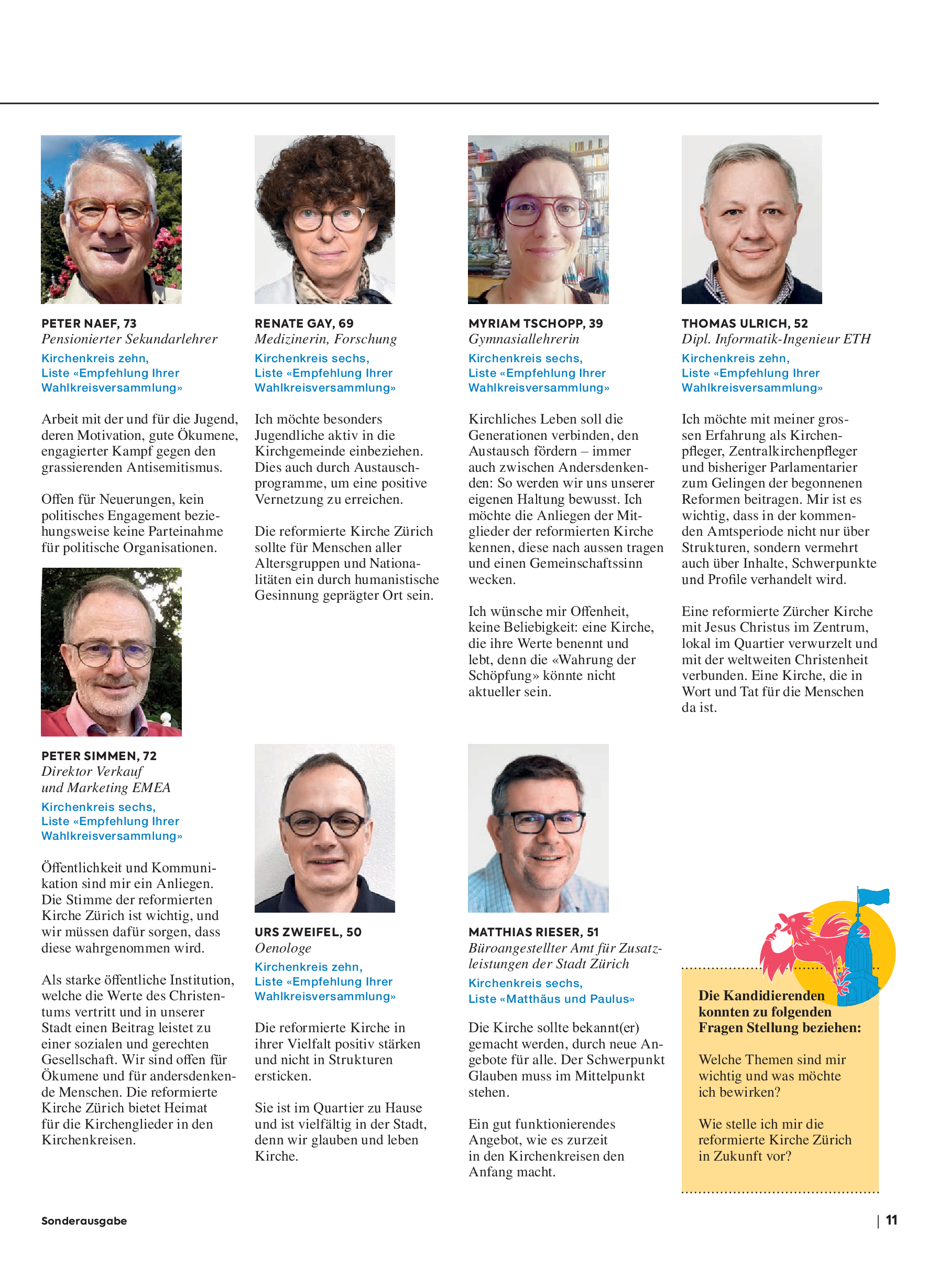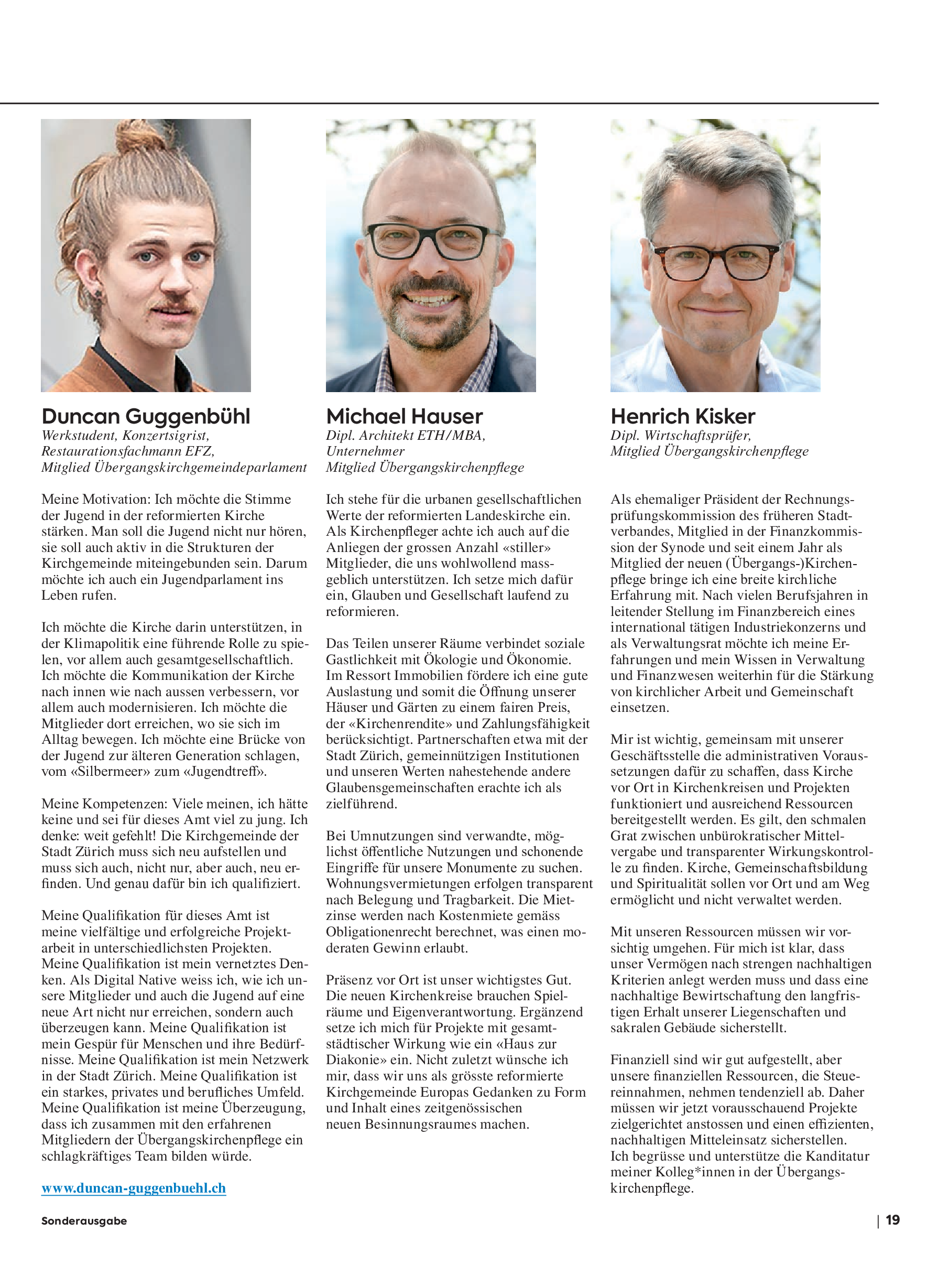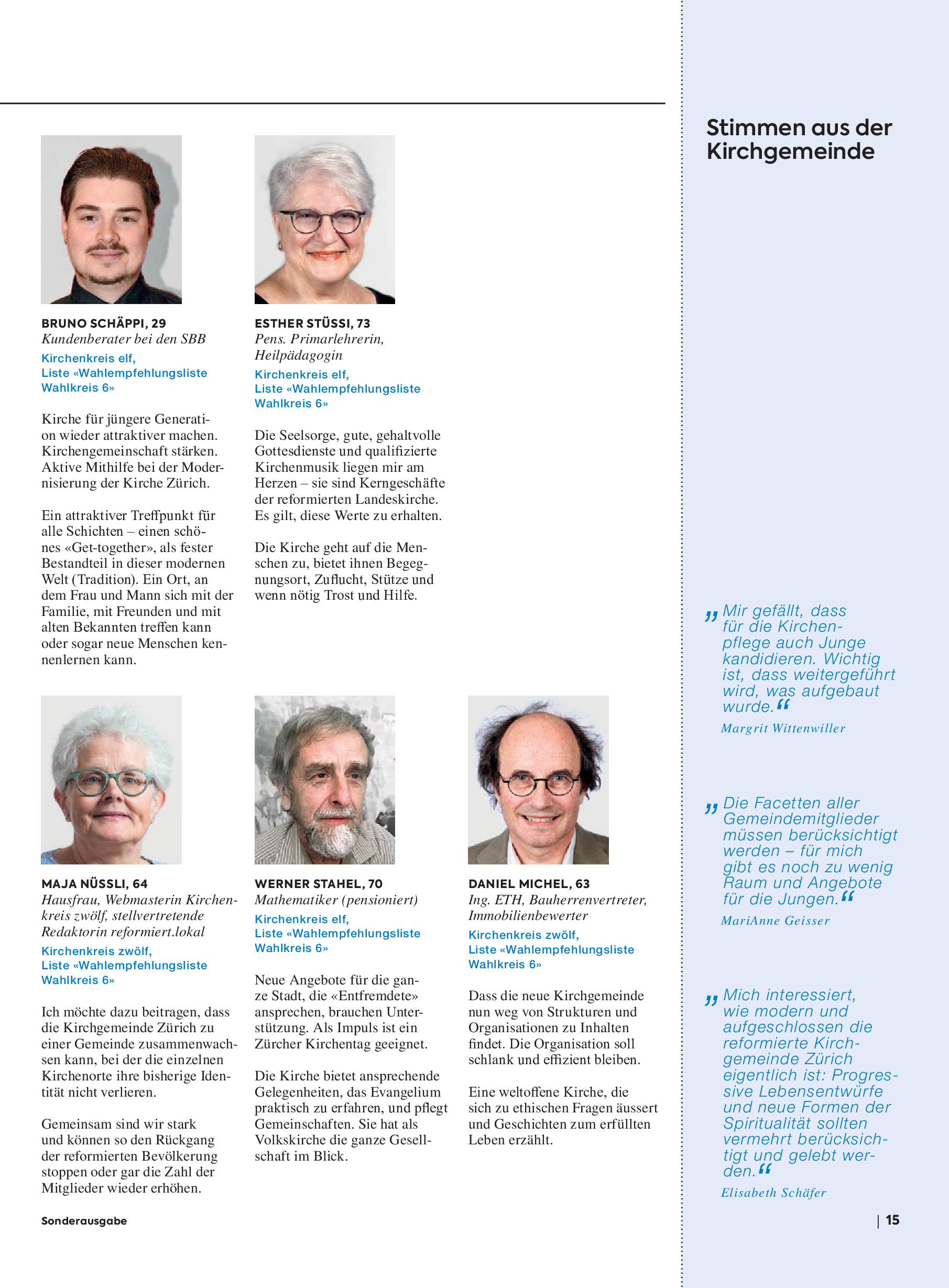 1Erstmals wurde in der Kirchgemeinde Zürich ein Gottesdienst zum Beginn der Legislatur gefeiert. Es war eine stimmungsvolle Feier.